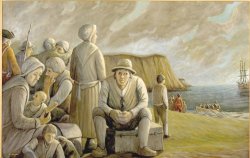 This depicts the expulsion of the Acadians from Grand Pré, Nova Scotia. For